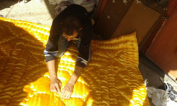 في محله المتواضع غرب مدينة غزة، انشغل سليم العكلوك (50 عاماً)، بتنجيد أحد الأغطية الشتوية الثقيلة أو ما يعرف بـ "اللحاف"، في مهنة تقاوم الاندثار.