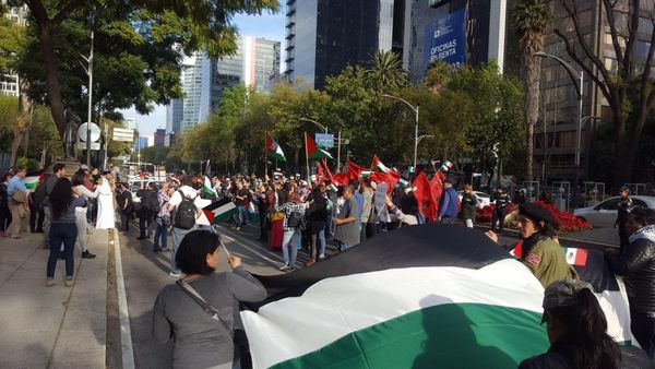 وشهد ميدان ملاك الاستقلال أشهر معالم المكسيك وسط العاصمة المكسيكية، مسيرة تضامنية حاشدة، نصرة للقدس واحتجاجاً على اعلان الرئيس الأمريكي الاعتراف بالقدس عاصمة لإسرائيل.