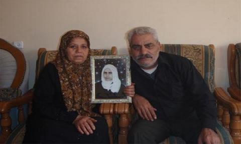 اعتدال وأحمد أبو عودة يحملان صورة لابنتهما ناريمان أبو عودة