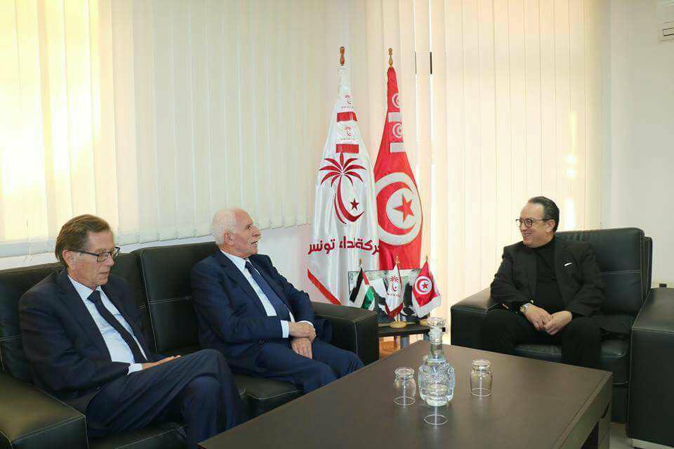 كما أجتمع الأحمد مساء اليوم أيضا مع حافظ قائد السبسي المدير التنفيذي لحزب حركة نداء تونس في مقر الحزب ببحيرة تونس لتنسيق المواقف المشتركة بين الحزب وحركة فتح في الساحة الدولية، وخاصة الاوروبية منها، حيث يتمتع الحزب بعلاقات ممتازة مع دول أوروبا، وذلك لحشد الدعم للقضية العادلة لشعبنا.