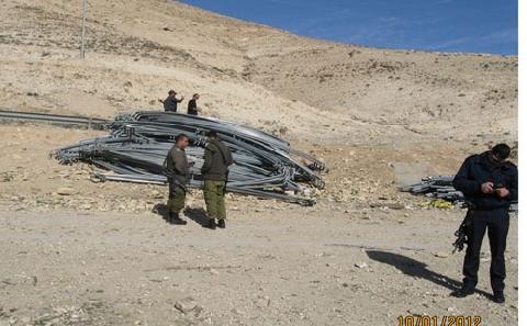 ويروي جودة اسعيد عضو الأمانة العامة لاتحاد الفلاحين وأحد المكلفين بتوزيع تلك الخيام والبركسات ما جرى اليوم بالقول: "فوجئنا بقوات كبيرة من جيش الاحتلال وما تسمى بالإدارة المدينة، تقتحم مكان التوزيع في منطقتي الكسارات والخان الأحمر، وتقوم باحتجاز بطاقات الحضور وسائقي الشاحنات المحملة بالخيام ومصادرة جميع المواد والمعدات المعدة للتوزيع على أبناء البادية.