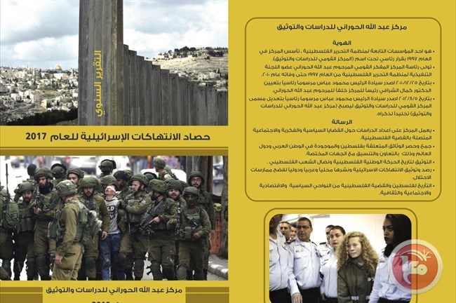 صدر حديثاً عن مركز عبد الله الحوراني للدراسات والتوثيق، التابع لمنظمة التحرير الفلسطينية، كتاب جديد بعنوان "حصاد الانتهاكات الإسرائيلية للعام 2017".