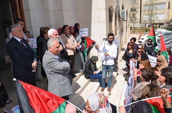 وشارك أيضا في الوقفة نواب في المجلس التشريعي هم: انتصار الوزير، سحر القواسمي، قيس عبد الكريم، بسام الصالحي، وأمين عام المجلس التشريعي ابراهيم خريشه.