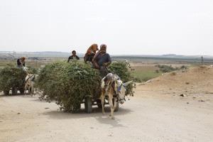 ورغم خطورة المكان وبعده عن التجمعات السكنية، إلا أن العشرات من البدو يقومون برعي أغنامهم وجمع الحصيد لإطعام الماشية والجمال، من خلال عربات تجرها الحمير.
