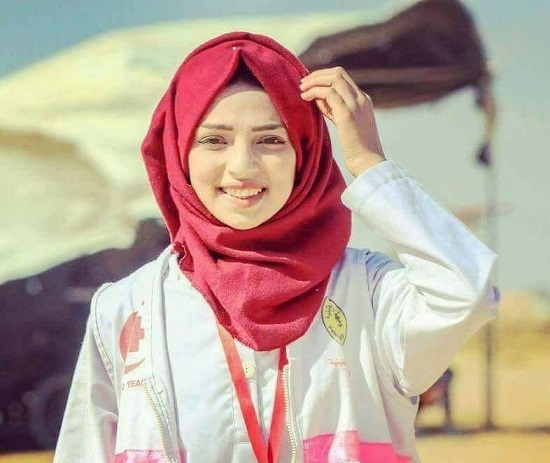 خان يونس- محمد أبو فياض- نالت رصاصة قاتلة لقناص اسرائيلي مجرم، من مضمدة الجروح، ملاك الرحمة، شهيدة الإنسانية، المسعفة رزان أشرف عبد القادر النجار (21 عاماً)، وأوقعتها شهيدة شرق خان يونس جنوب قطاع غزة، بعد ان اصابت قلبها الانساني بشكل مباشر من جهة الخلف.