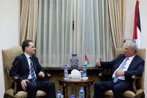 بحث عضو اللجنة التنفيذية ونائب رئيس الوزراء زياد أبو عمرو، مع المفوض العام لوكالة غوث وتشغيل اللاجئين الفلسطينيين "الأونروا" بيير كرينبول، الأزمة المالية التي تواجهها الوكالة، وشؤون الموظفين الذين تنوي الوكالة إنهاء أو تقليص خدماتهم.