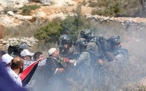 وقمعت قوات الاحتلال، الاعتصام السلمي بإطلاق الرصاص المعدني المغلف بالمطاط وقنابل الغاز المسيل للدموع وقنابل الصوت، ما أدى لإصابة عدد من المواطنين بالاختناق.