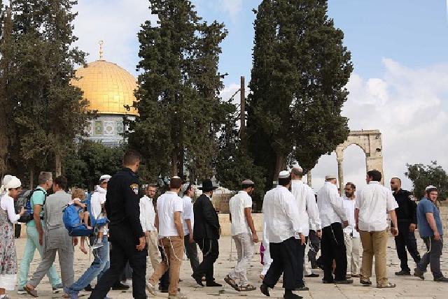 مستوطنون بلباسهم التلمودي يستبيحون الأقصى والاحتلال يستدعي رئيسة الحارسات