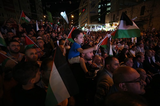 وفي بيت لحم أعرب مئات المواطنين عن ارتياحهم الكبير والمؤيد لما جاء في خطاب الرئيس محمود عباس أمام الجمعية العامة للأمم المتحدة.