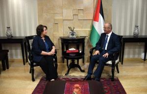 وبحث رئيس الوزراء مع الضيفة إجراءات الإدارة الاميركية الأخيرة، لا سيما الاعتراف بالقدس عاصمة لإسرائيل، ومحاولاتها انهاء ملف اللاجئين ووكالة "الاونروا"، إضافة لقطع دعمها لمستشفيات القدس، واغلاق مكتب منظمة التحرير في واشنطن، مؤكدا ان هذه الإجراءات تشجع الاحتلال على تصعيد انتهاكاته، وتقوض فرص السلام.