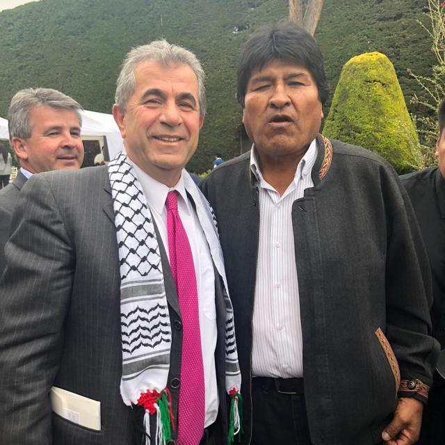 جاءت تصريحاته خلال مشاركة سفير دولة فلسطين في بوليفيا محمود علواني، في مأدبة غذاء أقامها الرئيس البوليفي في منزله، بحضور وزراء الخارجية، والدفاع، والعدل، والاعلام، وبعض الرسميين البوليفيين.