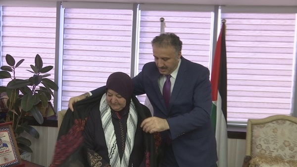رام الله- كرّمت أم ناصر أبو حميد "خنساء فلسطين"، الهيئة العامة للإذاعة والتلفزيون ممثلة بالمشرف العام على الإعلام الرسمي الوزير أحمد عساف، خلال زيارتها مقر الهيئة، اليوم الاثنين، حاملة رسالة شكر لما قدّمه الإعلام الرسمي من تغطية للأحداث خلال هدم قوات الاحتلال الإسرائيلي منزلها للمرة الثالثة على التوالي.
