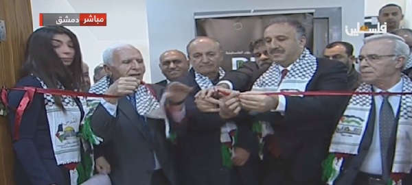 وقص شريط الافتتاح عضو اللجنتين التنفيذية لمنظمة التحرير والمركزية لحركة فتح عزام الأحمد، وعضو اللجنة التنفيذية واصل أبو يوسف، والمشرف العام على الإعلام الرسمي الوزير أحمد عساف، بحضور سفير دولة فلسطين لدى دمشق محمود الخالدي، ورئيس الدائرة السياسية في منظمة التحرير أنور عبد الهادي، وعضو اللجنة المركزية لحركة فتح سمير الرفاعي، والأمين العام المساعد للجبهة الشعبية- القيادة العامة طلال ناجي، ومسؤول الجبهة الشعبية في الخارج، عضو مكتبها السياسي ماهر الطاهر، ومحافظ جنين أكرم الرجوب.