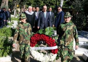نيابة عن الرئيس محمود عباس، وضع رئيس الوزراء رامي الحمد الله، اليوم الإثنين، اكليلا من الزهور على النصب التذكاري لشهداء الثورة الفلسطينية، في بيروت.