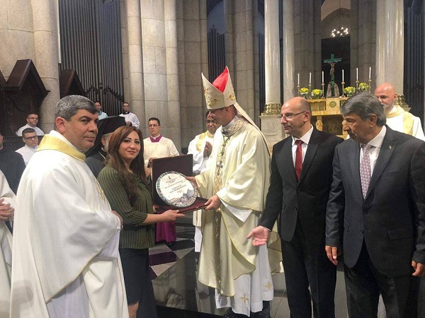 كما قام رئيس الغرفة التجارية بتقديم هدية لرئيس الوفد الكنسي، الأب ابراهيم فلتس.