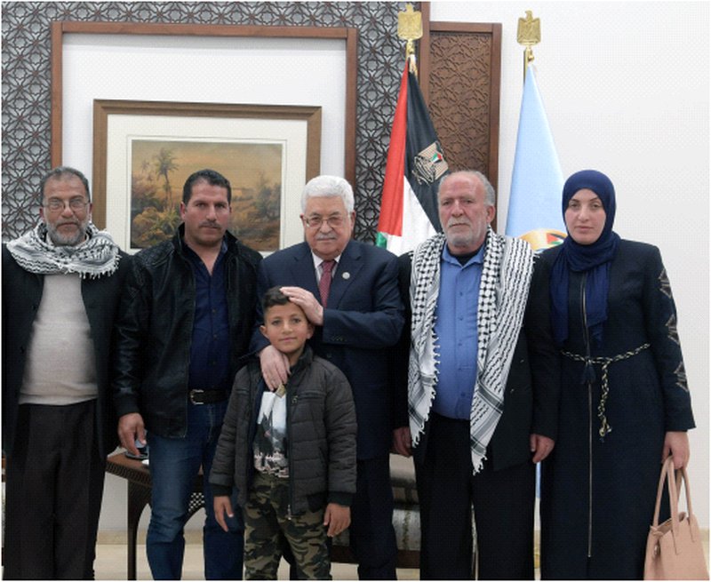 استقبل رئيس دولة فلسطين محمود عباس، مساء اليوم الأربعاء، في مقر الرئاسة بمدينة رام الله، والدة وعائلة الشهيد أيمن حامد (18 عاما) الذي استشهد برصاص جيش الاحتلال الإسرائيلي.