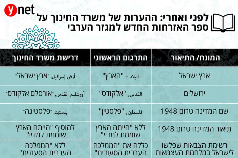ووفقا لما نشرته الصحيفة العبرية فقد أوعزت وزارة التعليم "الإسرائيلي" لمترجمين بتحريف ترجمة بعض العبارات للعربية وإدخالها في المنهاج، وجرى استبدال كلمة "القدس" بكلمة "أورشليم القدس" وكلمة "فلسطين" بكلمة "فلستينا".