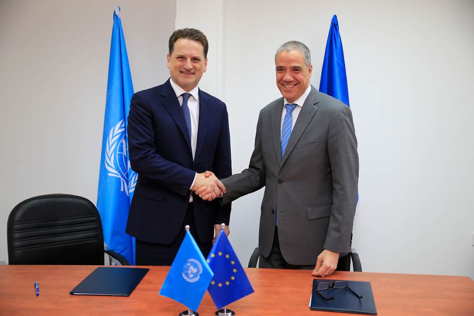 وقع ممثل الاتحاد الأوروبي رالف طراف والمفوض العام لوكالة الأمم المتحدة لإغاثة وتشغيل لاجئي فلسطين في الشرق الأدنى (أونروا) بيير كرينبول، في مقر رئاسة "أونروا" بالقدس الشرقية، اتفاقية تبرع دعما لموازنة الوكالة البرامجية لعام 2019، بقيمة 82 مليون يورو لدعم عمل الوكالة في مجال التنمية البشرية لهذا العام.