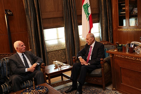 عمان- اجتمع عضو اللجنتين التنفيذية لمنظمة التحرير والمركزية لحركة فتح عزام الأحمد في عمان مع الرئيس نبيه بري رئيس مجلس النواب اللبناني.