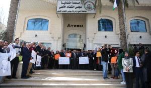 شارك عشرات القضاة والمحامين وموظفي السلطة القضائية في المحاكم النظامية، وقفة احتجاجية أمام مجمع المحاكم في مدينة البيرة، اليوم الأربعاء، استنكارا للجريمة التي ارتكبتها قوات الاحتلال الإسرائيلي بحق الشهيد ياسر الشويكي (36 عاما) يوم امس، الذي يعمل موظفا في محكمة بداية الخليل.