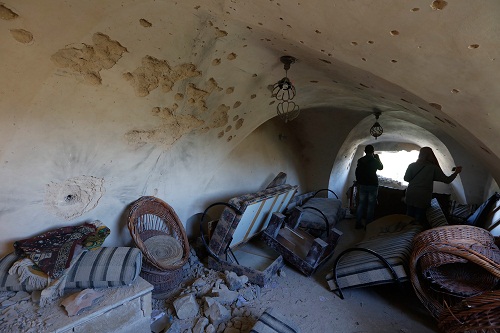 هناك.. لا يمكن وصف ما أحدثه الاحتلال في منزل المواطن حمد، في البلدة القديمة من عبوين، إلا بـ"الحرب".. فتحات كبيرة في الجدران تعدى حجم بعضها مترا ونصف المتر بفعل إطلاق القذائف وصواريخ الـ"لاو" و"أنيرجا" صوب المنزل القديم.. نوافذ مهشمة، وحجارة وشظايا متطايرة دللت على شراسة حرب عُمر.