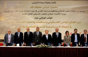ودعا القطاع الخاص إلى تحمل المسؤولية الوطنية والمساهمة في دعم مدينة القدس عن طريق التنمية والاستثمار وخلق الشراكات مع الدول العربية، وتعزيز الشراكة بين مؤسسات القدس ونظيراتها في باقي أنحاء الوطن.