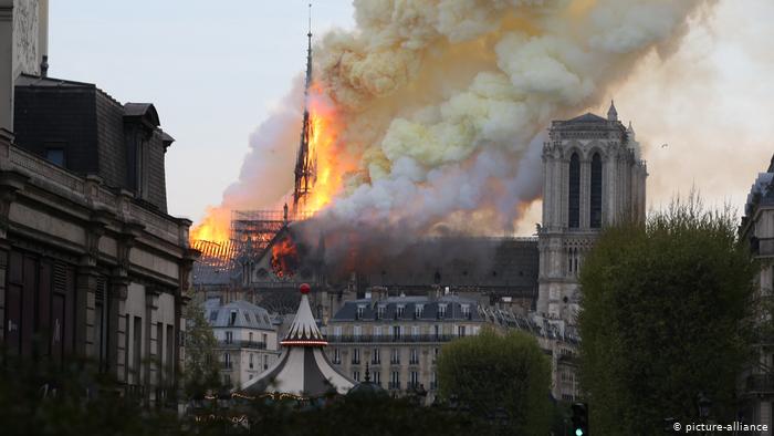 من جهته، أعلن الرئيس الفرنسي إيمانويل ماكرون أنّ "الأسوأ تم تجنّبه" في الحريق الضخم الذي اندلع في كاتدرائية نوتردام بوسط باريس وأدّى إلى انهيار برجها وسقفها، واعداً بإعادة بناء المعلم التاريخي الذي سبّب احتراقه صدمة وحزناً في العالم أجمع.