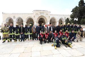 الدفاع المدني الأردني يجري تدريبات لرجال الإطفاء في المسجد الأقصى