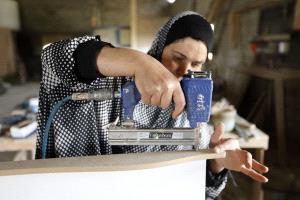 بيديها الناعمتين تبدع خلود قاسم (38 عاما) في مهنة النجارة، وتضع لمساتها في حف وتجميع ونشر القطع الخشبية على المنشار، وتحويلها الى أثاث وأشكال خشبية مميزة في مهنة عرف منذ فجر التاريخ إسنادها للرجال.