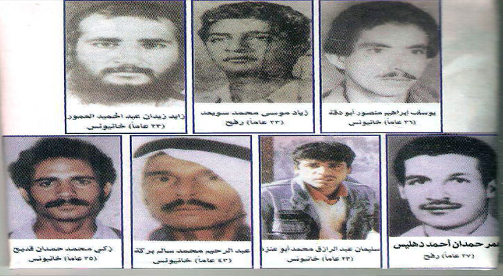 الشهداء الذين سقطوا تحت رصاص عامي بوبر هم: عبد الرحيم محمد سالم بريكة (23 عاما) من خان يونس، وزياد موسى محمد سويد (22 عاما) من رفح، وزايد زيدان عبد الحميد العمور (23 عاما) من خان يونس، وسليمان عبد الرازق أبو عنزة (22 عاما) من خان يونس، وعمر حمدان أحمد دهليز (27 عاما) من رفح، وزكي محمد محمدان قديح (35 عاما) من خان يونس، ويوسف منصور إبراهيم أبو دقة من خان يونس.