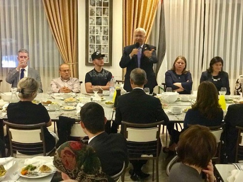 ولفت إلى أن الافطار نظم باسم الرئيس محمود عباس، وهو تقليد سنوي لعائلات أبطالنا الأسرى مع السلك الدبلوماسي العامل في فلسطين، مبينا أن عائلات وزوجات وأبناء الاسرى تحدثوا لتصل رسائلهم للعالم، وحتى يعلم العالم أن هناك اعتقال اسمه "الاعتقال الاداري" الذي من الممكن أن يمتد إلى 5 سنوات دون محاكمة، وتمنع عائلات الاسرى من زيارة أبنائهم، كما هو حال زوجة الأسير مروان البرغوثي الممنوعة من زيارة زوجها للعام الثالث، كما سمع الدبلوماسيون معاناة عائلة الأسير أيمن الشرباتي المحكوم (100 عام) على لسان ابنه.