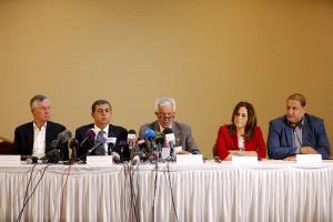 كما شارك في المؤتمر الصحفي ممثل عن الغرفة التجارية الفلسطينية الأميركية.