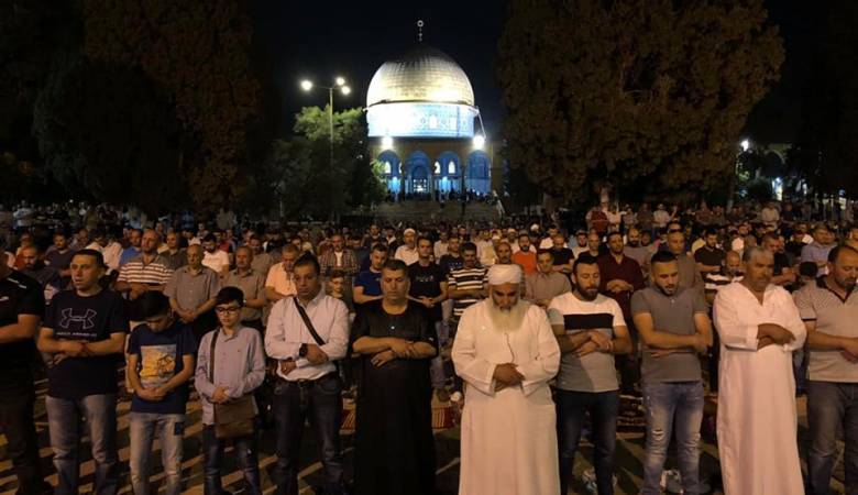 أدى عشرات الآلاف، الليلة، صلاة التراويح في رحاب المسجد الأقصى المبارك.