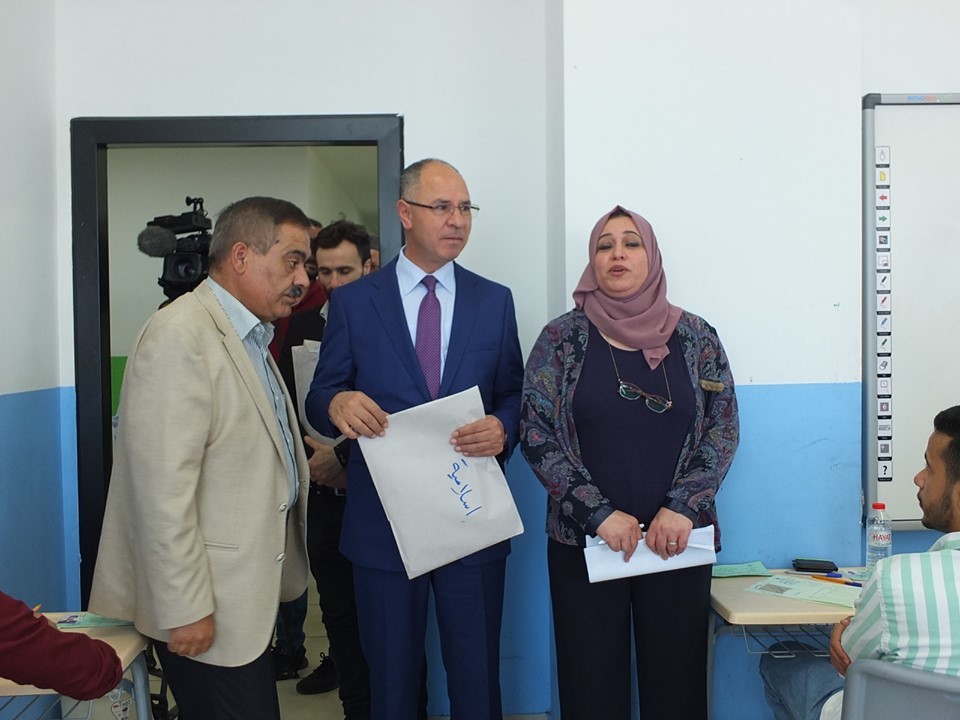تفقد سفير دولة فلسطين لدى الجمهورية التركية فائد مصطفى، اليوم السبت، قاعة امتحانات الثانوية العامة (الإنجاز)، في مدرسة الفنار الفلسطينية الدولية في مدينة اسطنبول التركية.