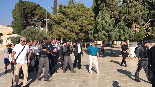 وقال مراسلنا إن المستوطنين نفذوا جولات استفزازية في المسجد واستمعوا الى شروحات حول أُكذوبة الهيكل المزعوم قبل الخروج من المسجد من جهة باب السلسلة.
