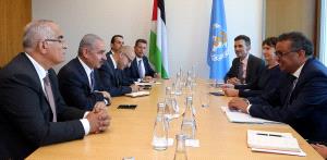 التقى رئيس الوزراء محمد اشتية، مساء اليوم الأربعاء، مدير عام منظمة الصحة العالمية تيدروس أدهانوم، في مقر المنظمة بجنيف، بحضور سفير فلسطين لدى سويسرا إبراهيم خريشي.
