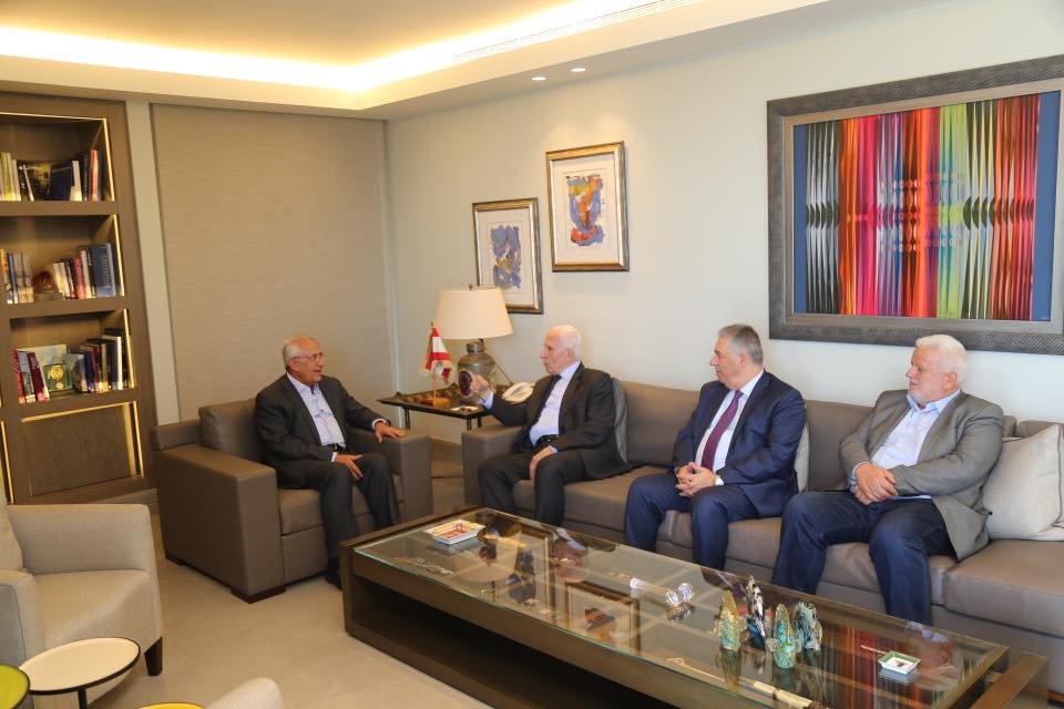 بيروت 4-7-2019 - التقى عضو اللجنتين التنفيذية لمنظمة التحرير الفلسطينية والمركزية لحركة فتح عزام الأحمد اليوم الخميس، الرئيس اللبناني السابق العماد ميشال سليمان بحضور سفير دولة فلسطين لدى الجمهورية اللبنانية أشرف دبور وامين سر حركة فتح وفصائل منظمة التحرير الفلسطينية فتحي ابو العردات.
