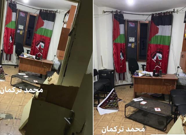 وقال مراسلنا، إن قوات الاحتلال اقتحم مكتب "الديمقراطية" في عمارة طنوس وسط المدينة، وعاثت فيه فسادا، واستولت على بعض محتوياته.