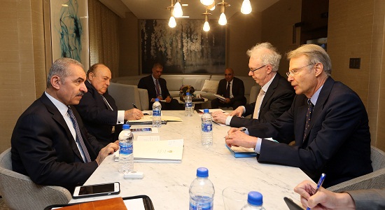 وأطلع اشتية الوفدين على خطط الحكومة في الانفكاك التدريجي عن الاحتلال، من خلال تعزيز المنتج الوطني، ووقف التحويلات الطبية الى اسرائيل، وإيجاد بديل محلي واقليمي لها، والتوجه نحو العمق العربي من خلال اتفاقيات ثنائية مع الأردن والعراق، ومصر قريبا.