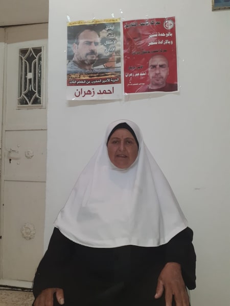 تجهل الحاجة رسيلة شحادة زهران (أم عادل) 72 عاماً من بلدة دير أبو مشعل شمال غرب رام الله، أي معلومة عن الوضع الصحي لابنها أحمد المضرب عن الطعام منذ 32 يوماً، حيث يمنع الاحتلال المحامين من زيارته في عزل سجن النقب.