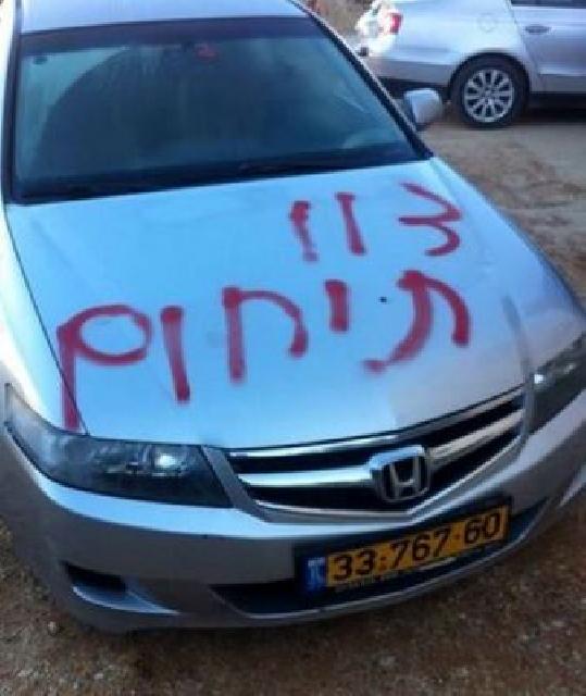 مستوطنون يعطبون إطارات ويخطون شعارات عنصرية جنوب نابلس