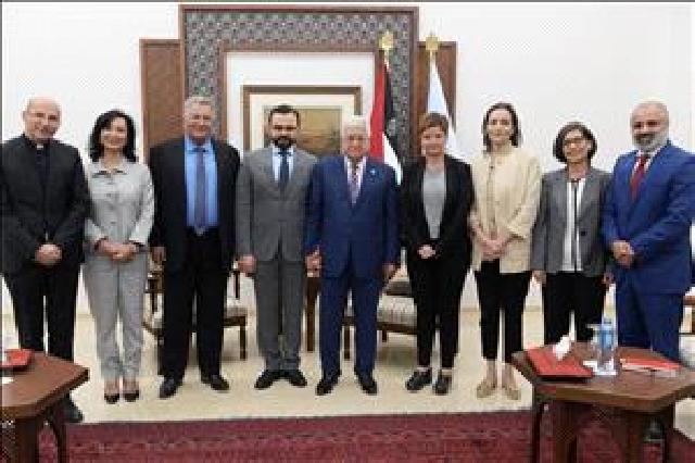 استقبل رئيس دولة فلسطين محمود عباس، اليوم الثلاثاء، بمقر الرئاسة في مدينة رام الله، رئيس وأعضاء مجلس إدارة المكتبة الوطنية.