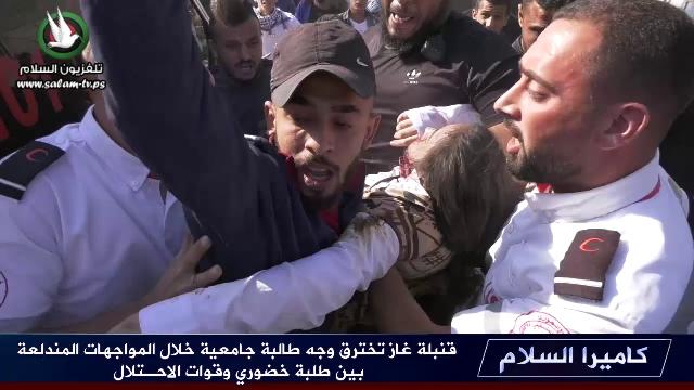 الاحتلال يصيب طالبة جامعية بقنبلة غاز في الوجه وآخرين بالرصاص خلال مواجهات