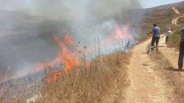 مستوطنون يضرمون النار بأشجار زيتون في سبسطية شمال غرب نابلس