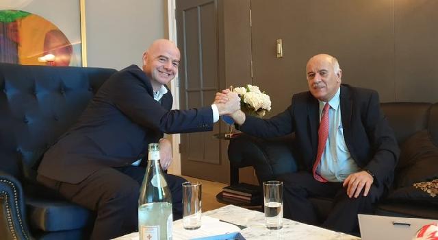الرجوب يطالب انفانتينو بتوفير آليات تضمن حق الاتحاد الفلسطيني بتطوير كرة القدم