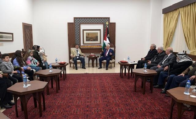 رام الله- استقبل رئيس دولة فلسطين محمود عباس، اليوم الثلاثاء، بمقر الرئاسة في مدينة رام الله، عائلة الفقيد المناضل كفاح العويوي، أمين سر حركة فتح السابق في محافظة الخليل.