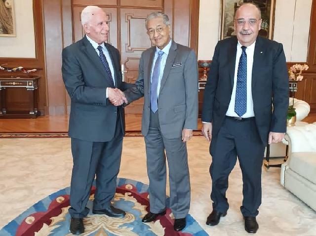 كوالالمبور- استقبل رئيس وزراء ماليزيا تون د. مهاتير بن محمد، عضو اللجنة التنفيذية لمنظمة التحرير الفلسطينية واللجنة المركزية لحركة فتح الأخ عزام الأحمد صباح اليوم الاثنين، حيث سلمه رسالة خطية من الرئيس أبو مازن يطلعه فيها على آخر تطورات القضية الفلسطينية وفي مقدمتها خطة الرئيس الأمريكي ترامب التي تستهدف تصفية القضية الفلسطينية.