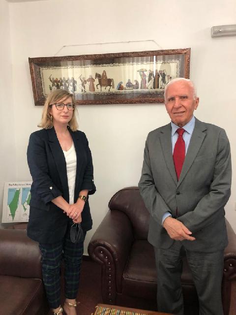 وجرى في اللقاء استعراض التطورات الخاصة بالقضية الفلسطينية في ضوء التوتر المتصاعد في المنطقة نتيجة القرار الإسرائيلي الذي يستهدف ضم مساحات واسعة من الأراضي الفلسطينية المحتلة وفرض السيادة الإسرائيلية عليها بدعم من الإدارة الأمريكية،وأكدت السيدة ويتلوفر موقف كندا الذي يرفض قرار حكومة إسرائيل بفرض السيادة على الأراضي الفلسطينية المحتلة منذ عام 1967 ودعم كندا لإحياء عملية السلام لحل النزاع الفلسطيني الإسرائيلي على أساس قرارات الشرعية الدولية.