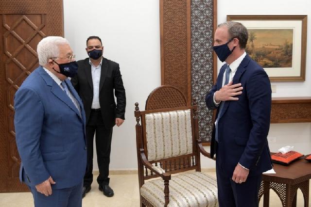 استقبل رئيس دولة فلسطين محمود عباس، اليوم الثلاثاء، بمقر الرئاسة في مدينة رام الله، وزير الخارجية البريطاني دومنيك راب.