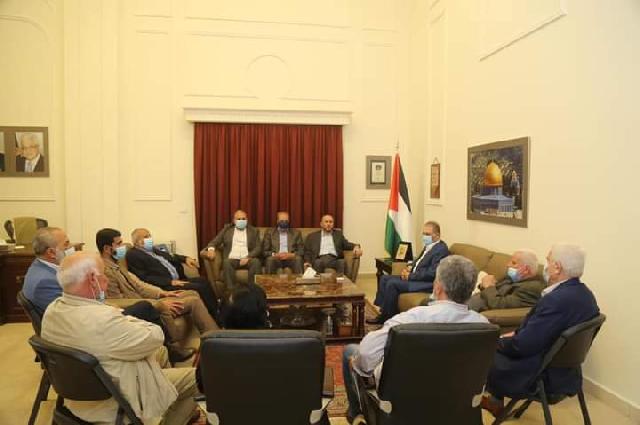 السفير دبور وقيادة "فتح" في لبنان يستقبلان وفدا من "حماس"